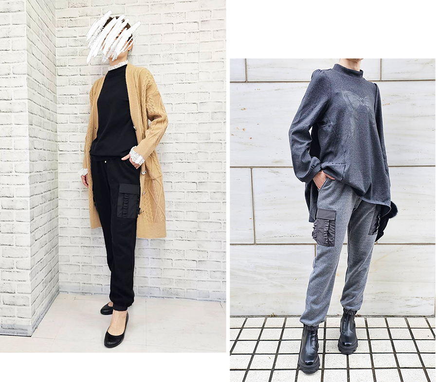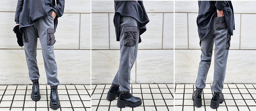 ■素材 伸縮性があり、肌当たりの良い裏ボア素材。 柔らかく程よい肉感で、寒い冬を暖かく過ごしていただけるリラックス感のあるジャージー素材を使用しました。