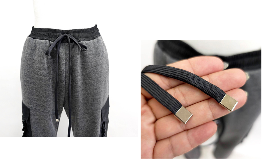 紐先はシルバー色の飾り付き。 足口はゴム仕様。
