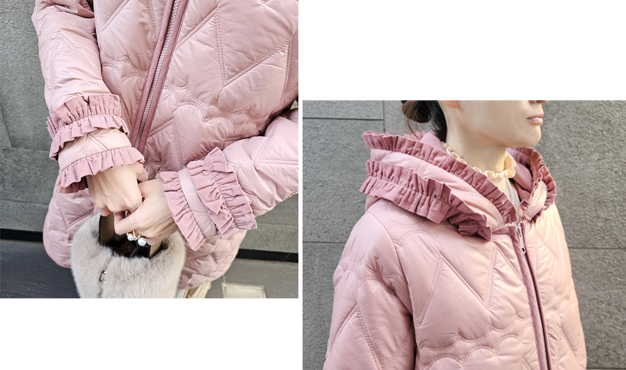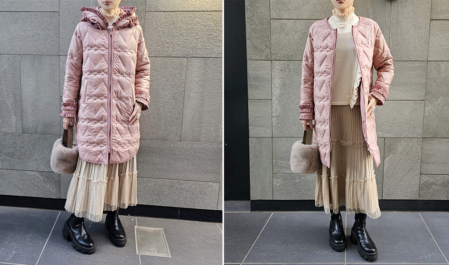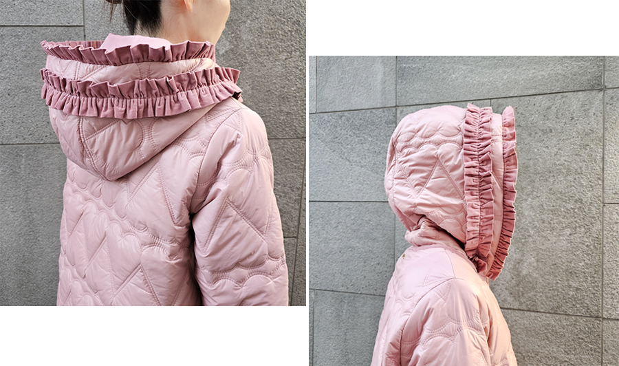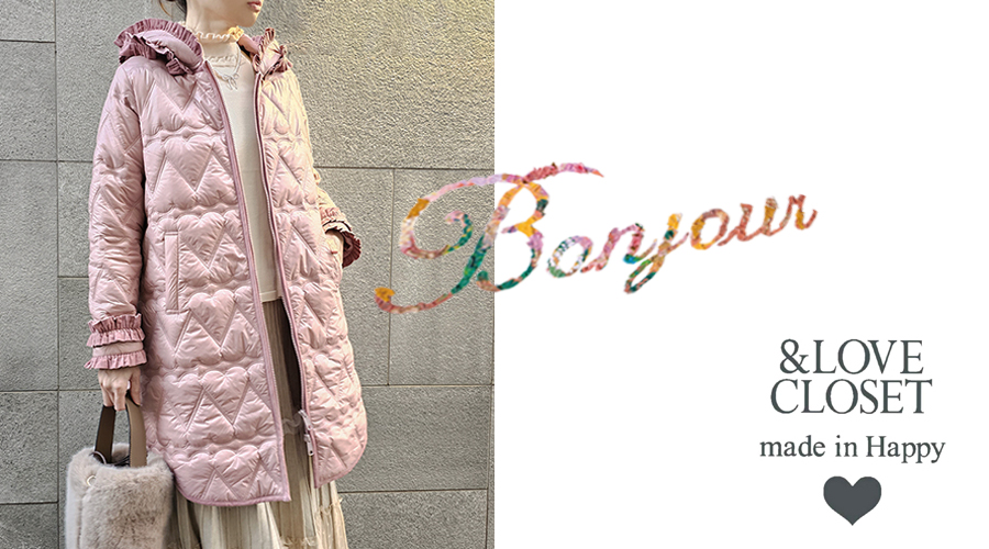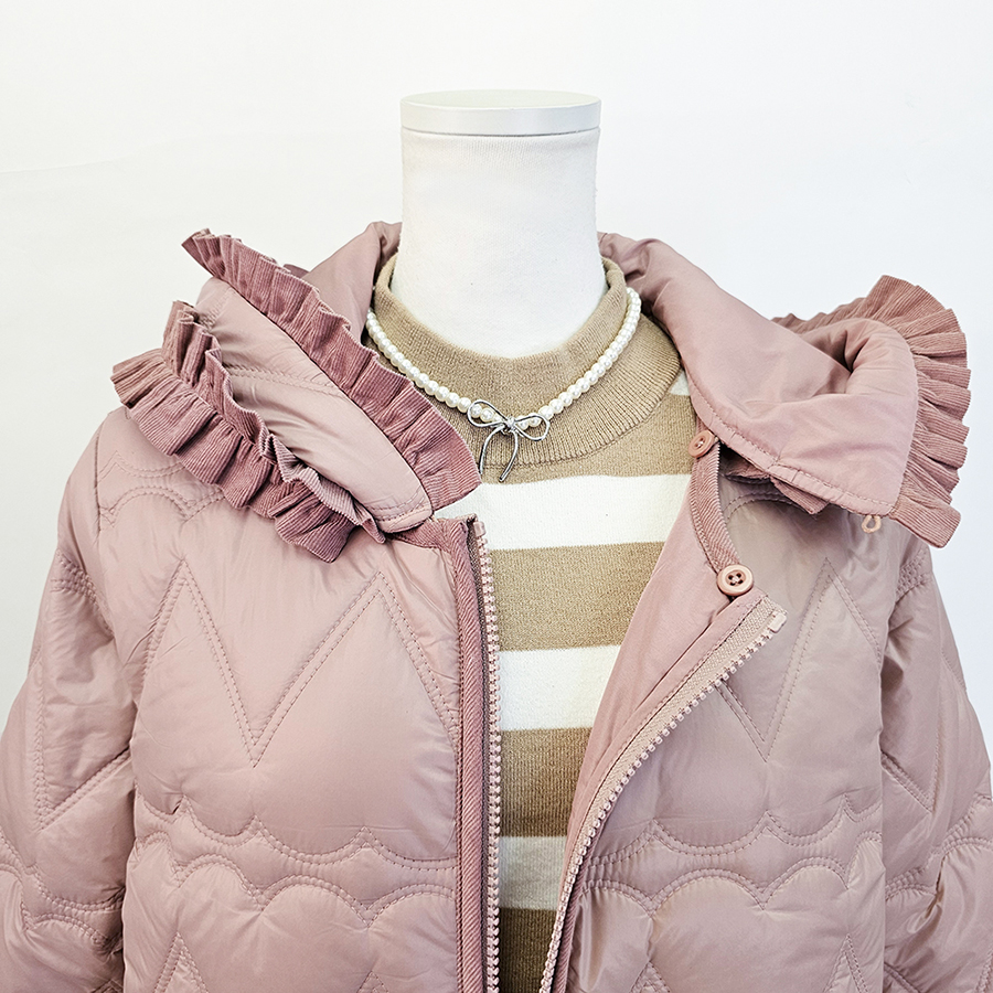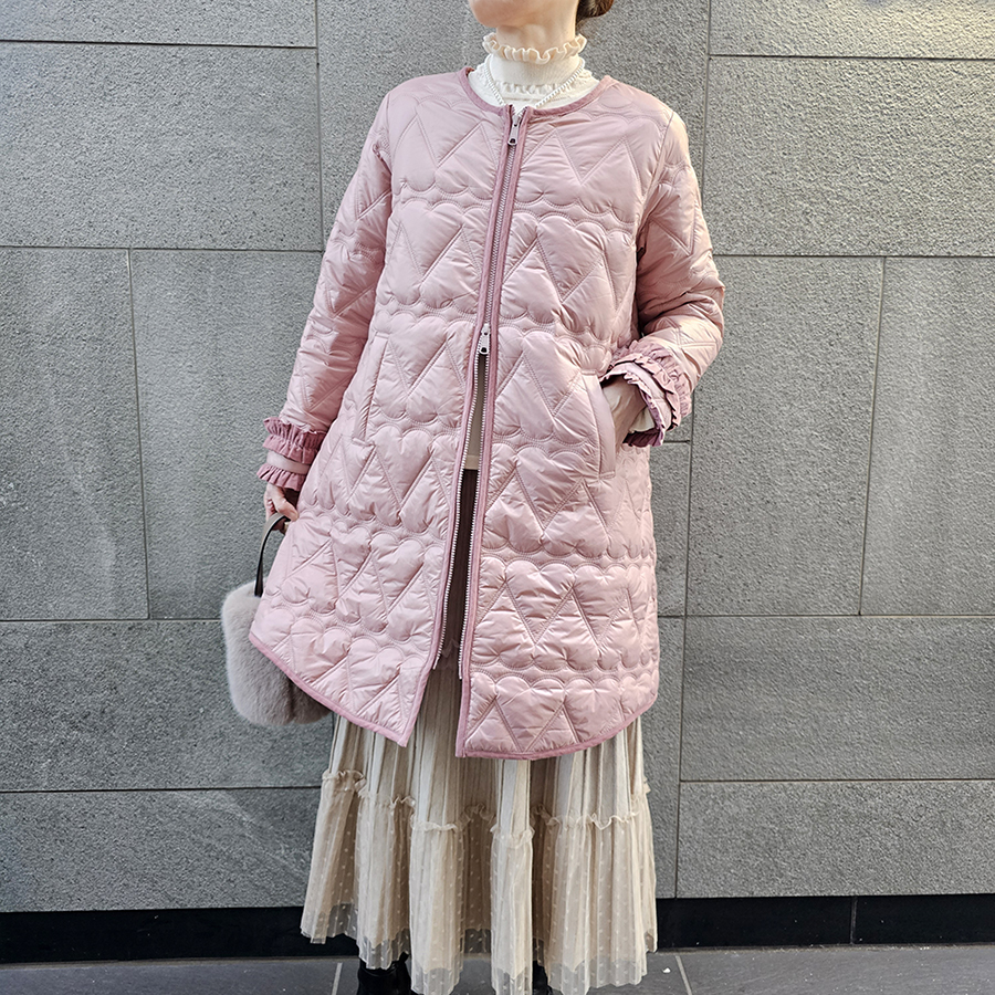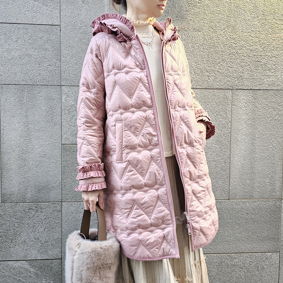&LOVECLOSET ![]() ![]() ![]() ![]() ![]() ![]() ![]() ![]() ![]() ![]() ![]() ![]() ![]() ![]() ![]() ![]() ![]() ![]() ハートキルトがキュート♡ 取り外しできるフード付きで、季節や気分に合わせて雰囲気を変えてロングシーズン着ていただける1着。 タートルネックなど暖かなアイテムと合わせて秋冬らしく、薄手のカットソーと合わせると春先まで着用していただけます。 ![]() ロングスカートと合わせれば女性らしく、デニムやパンツと合わせるとボーイッシュに。 この1着で、様々なフェミニンスタイルを自分らしく表現していただけます。 ![]() フェミニンな印象が強いハート模様を、サイズとフォルムにこだわり大人が取り入れやすいハートパターンに。 ![]() 艶のあるタフタとコーデュロイの異素材を組み合わせて、デザインポイントでもある”フリル”の存在感を際立たせました。 ![]() すっぽり被れるフードはフリルを施して、ボリューミーにデザイン。後姿をフェミニンな印象に魅せてくれます。 ![]() フードは取り外しが可能です。 ![]() 襟ぐりはコーデュロイでトリミングした、すっきりとしたクルーネック。後襟に飾った、ロゴプレートがアクセント。 ![]() フロントのファスナーは、上下両方から開閉が出来るダブルファスナーを使用。自転車や車の乗り降り等、足さばきが良くなる実用性にも配慮。 ![]() ■Fabric やわらく艶のあるタフタ素材を使用して、軽量に仕上げました。表地に使用したタフタは『撥水』加工を施し水を弾きます。 ![]()