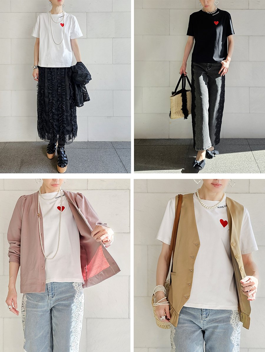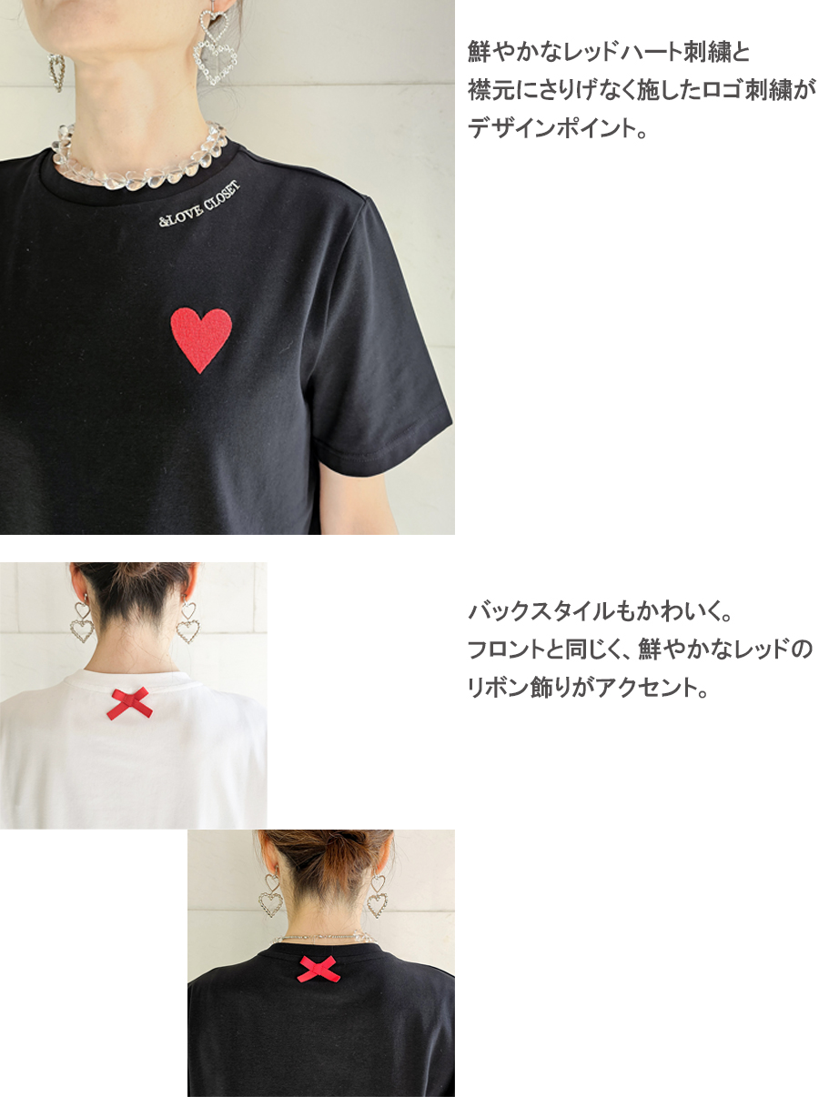 ポイントは、目を惹く鮮やかレッドのハート刺繍と、襟元に控えめに施した&LOVE CLOSETのロゴ刺。