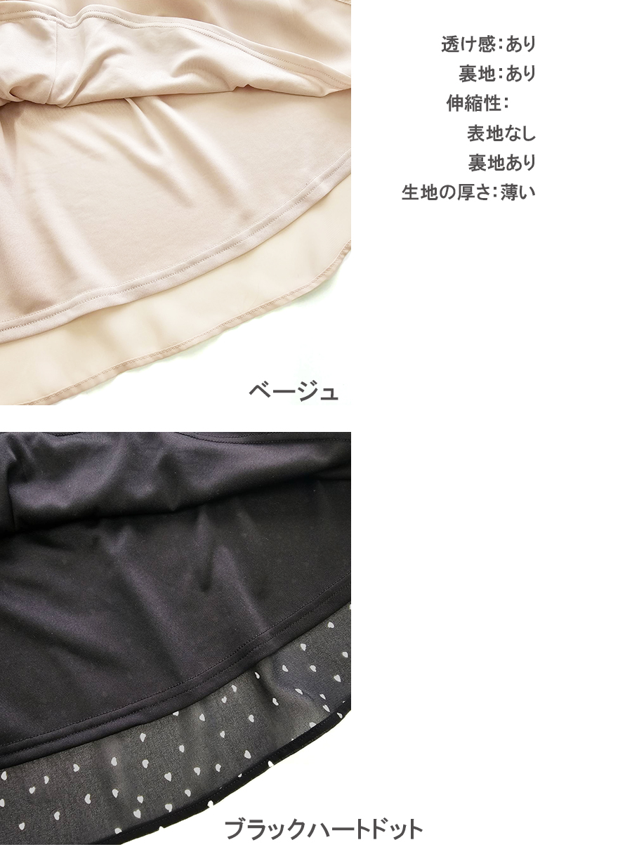 身頃部分には裏地が付いているので、透けを気にせず着用していただけます。