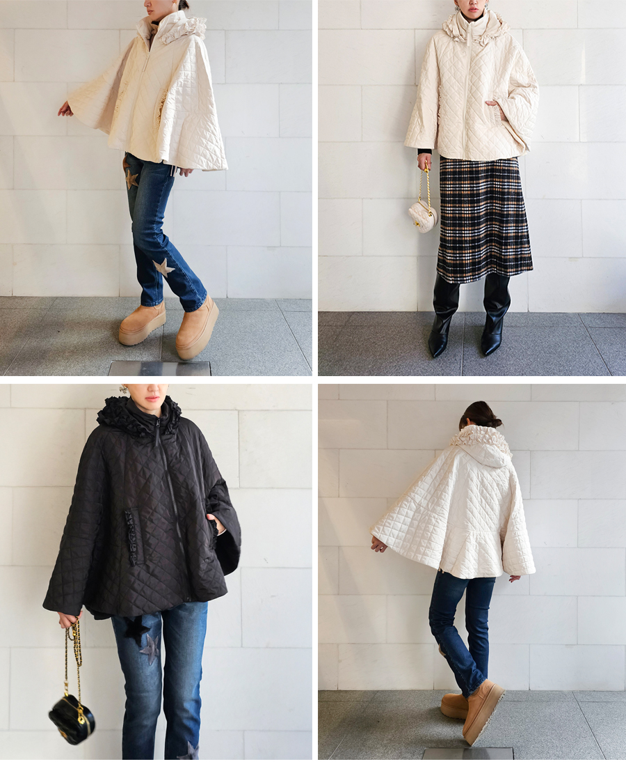 軽くて暖かい、360℃どこから見てもかわいいキルティングポンチョ。