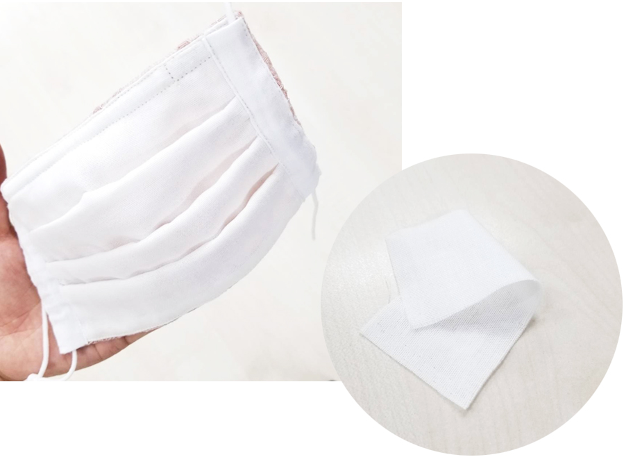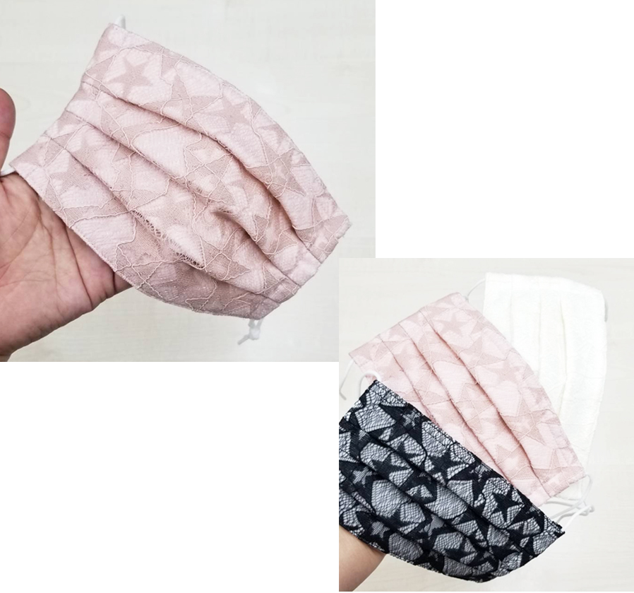プリーツデザインでしっかりとカバー。 3枚重ね構造ながら、表にレース素材を使用することで呼吸を楽に仕上げました。