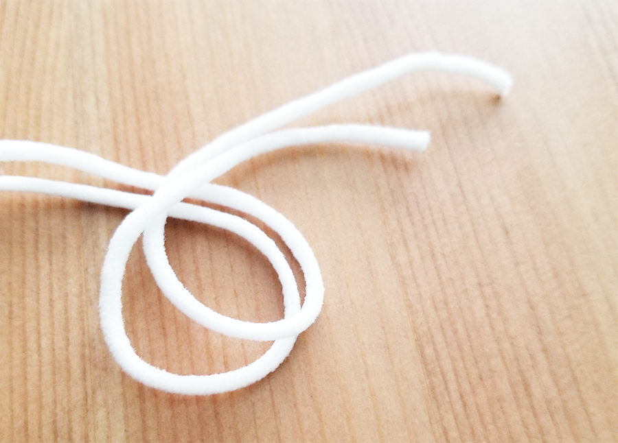 ゴム紐は柔らかで痛くなりにくい丸ゴムを使用しています。 長めにゴムをお付けしているので、お好みに長さに調整したり、お手持ちのゴムと交換していただくことも可能です。